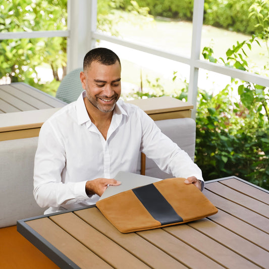 Our Mosso Briefcase is built for the job you have to do. Sleek, but roomy, with plenty of interior pockets, it holds your 13" laptop and all your essentials. It even comes with a padded crossbody adjustable strap that can be custom-sized to you. So you can move from home to office or a room to zoom with utter efficiency.